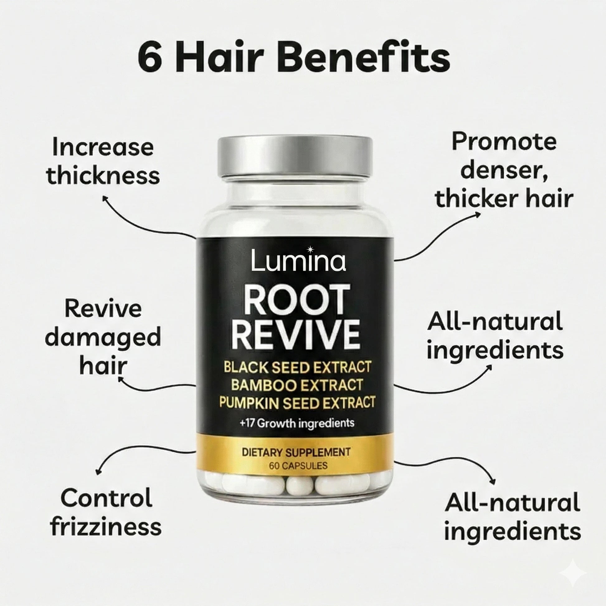 Our Root Revive Capsules are supported by extensive research on anti-inflammatory botanicals proven to restore healthy hair growth cycles. Rich in sea moss minerals, black seed extract, and turmeric, the bioactive compounds responsible for scalp healing: they help reverse follicle damage, reduce inflammation, and reignite your natural growth.